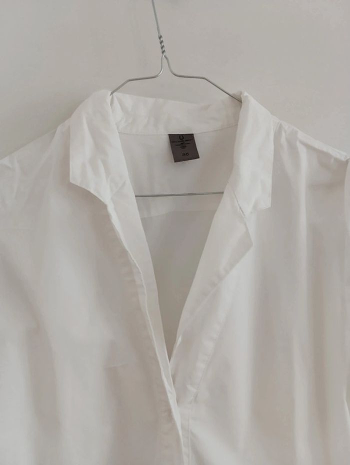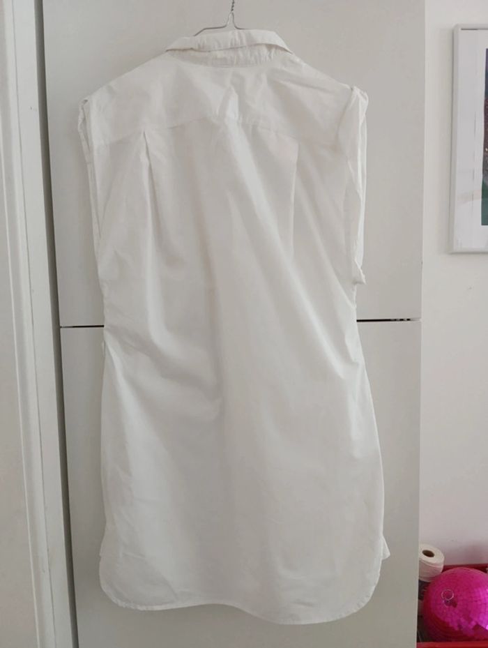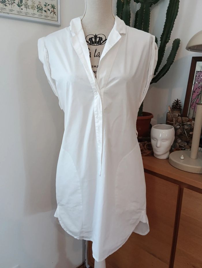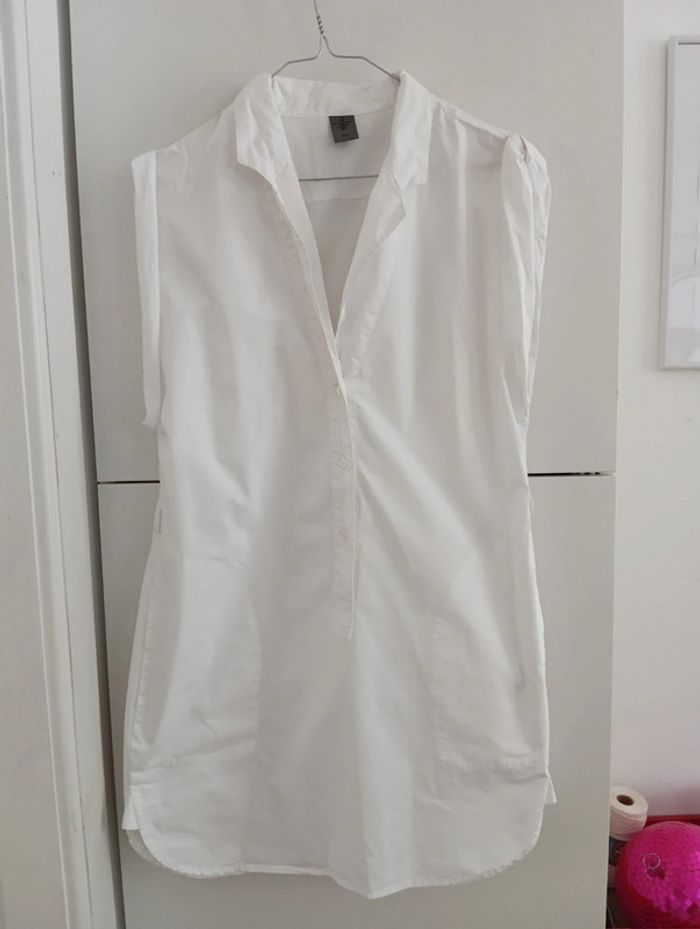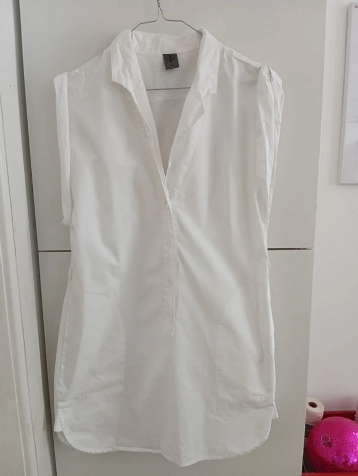 Blouse tunique blanche vero moda jeans taille 36 Passants pour glisser une ceinture pour ajuster la taille. Manches roulottées Mesures Epaules 40cm Aisselles 50cm Longueur 84cm 100% coton popeline 2 grandes poches