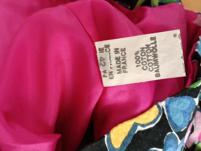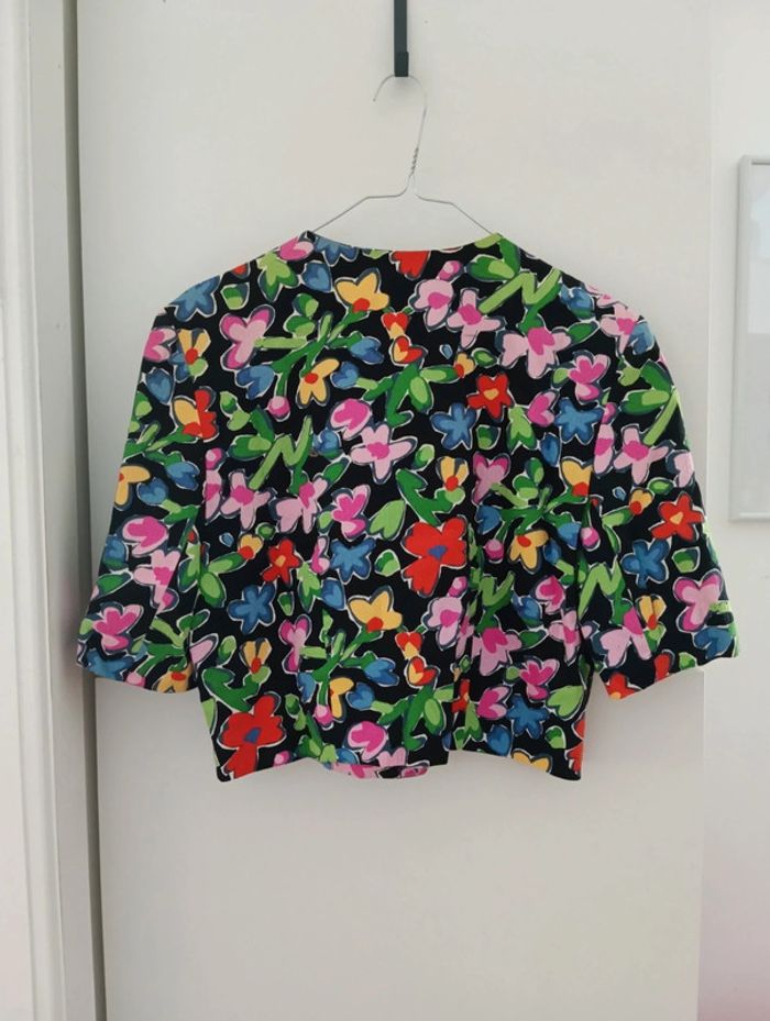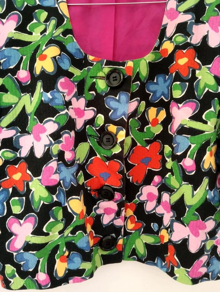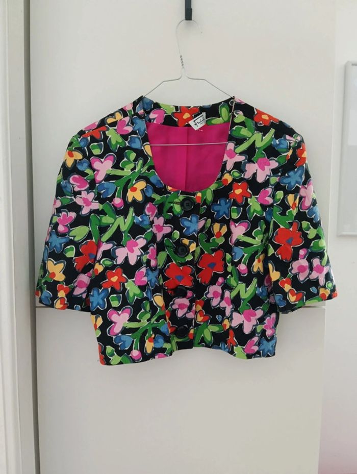 Veste légère manches 3/4 fleurs multicolores Courte Made in France 100% coton Taille 40/42 à confirmer avec les mesures Epaules 44cm aisselles 53cm longueur 47cm