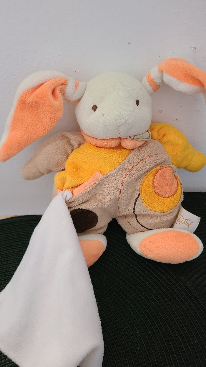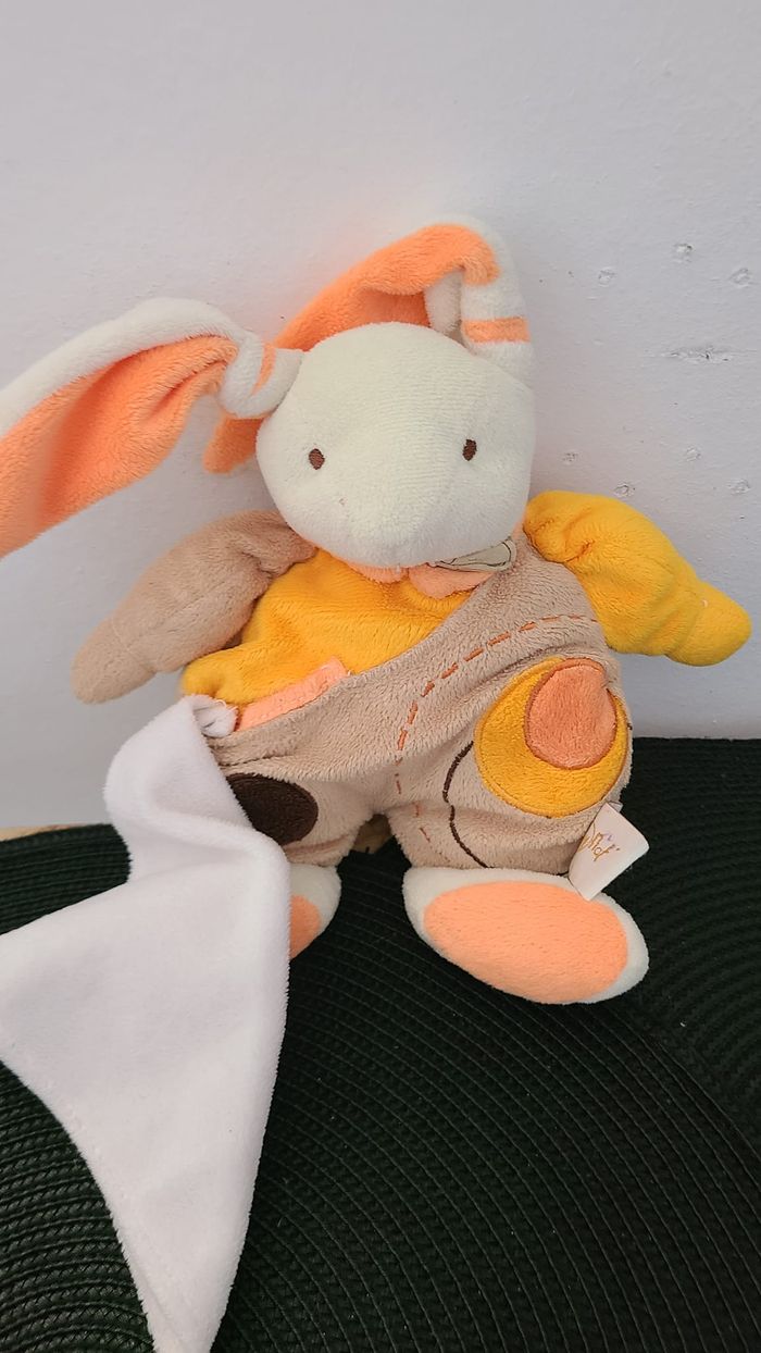 Doudou Lapin orange beige Mouchoir Baby Nat 25 cm - photo numéro 1