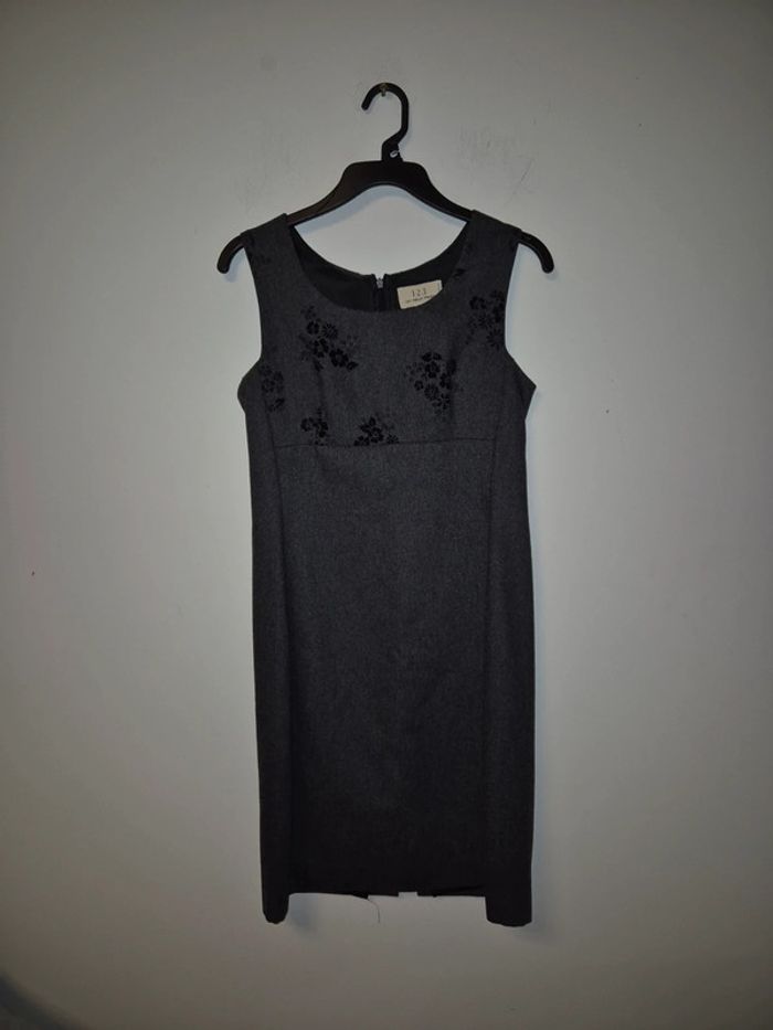 Robe 123 en très bon état. Longueur 93. Fermeture éclair à l'arrière et motif sur le haut. Avec doublure #femme42celine14