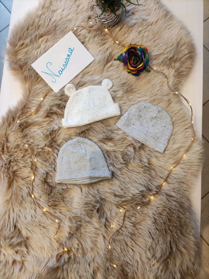 Lot 3 bonnets de naissance de chez Kiabi mixte #emiliebretaunaissancemixte
