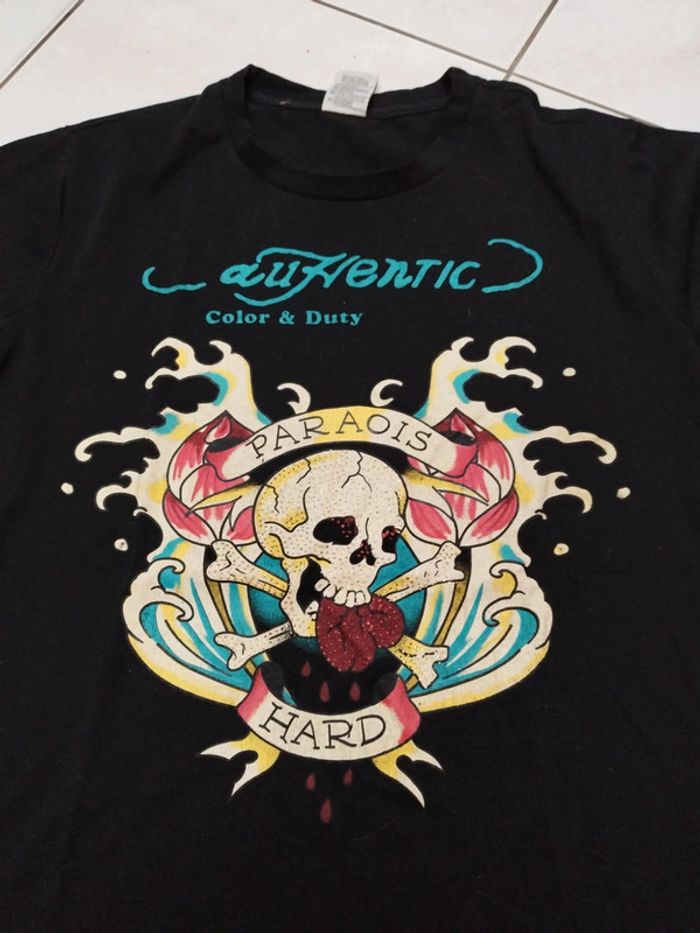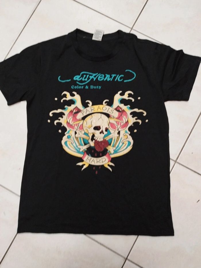 Superbe tee shirt homme manches courtes taille M. Superbe motif avec strass leger.