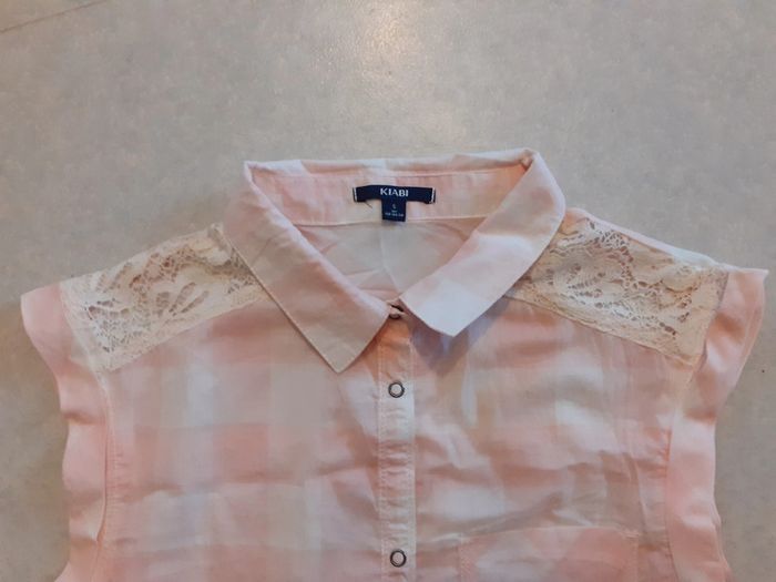 Chemisier à carreaux rose/blanc sans manche épaules en dentelles boutons pression sur le devant de marque Kiabi taille 16 ans excellent état
