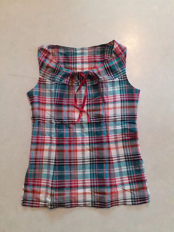 Chemisier à carreaux sans manches lacet bordeaux pour "serrer" la poitrine taille 34 Excellent état