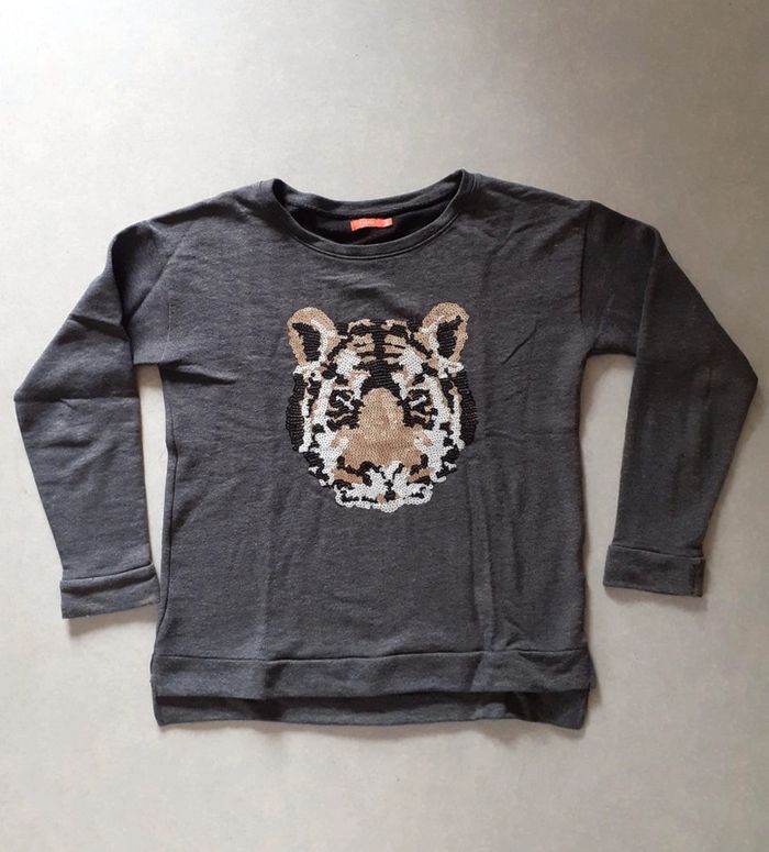 Sweat gris Avec "tête de tigre" en relief, brillant De marque Tissaia Taille 38/40 Excellent état