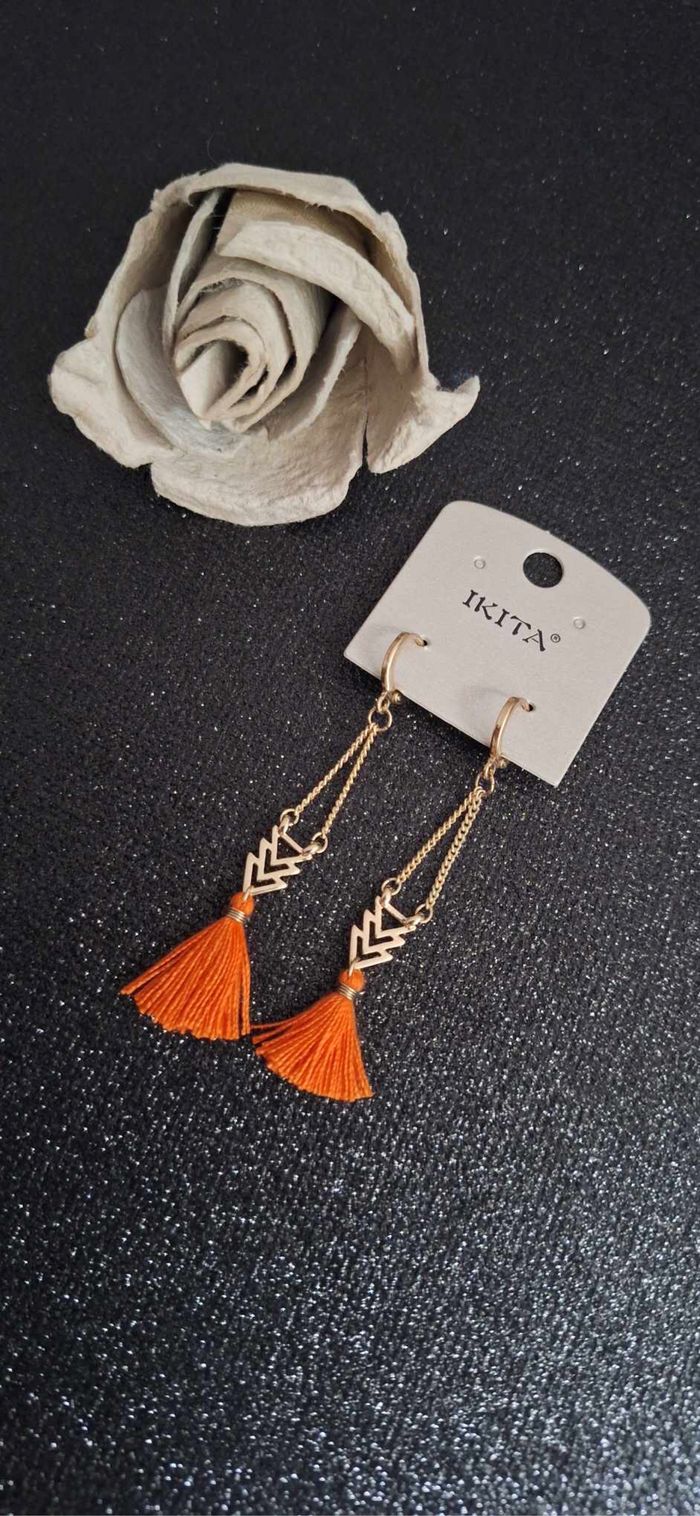 "AU COIN BOUTIQUE " BIJOUX N°216 boucle d oreille Fantaisie doré Pendante / pompom orange Neuf étiquette 🏷 Ikita 5€ #kelly_bijoux #kelly_aucoinboutique