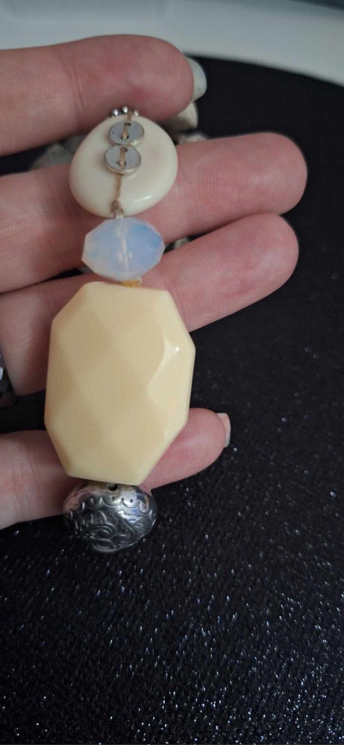 BIJOUX N°217 Bracelet Grosse perle , nacre Couleur beige , ecru , bleu ciel , argenté Elastique Neuf plus étiquette 🏷 1,50€ #kelly_bijoux #kelly_aucoinboutique