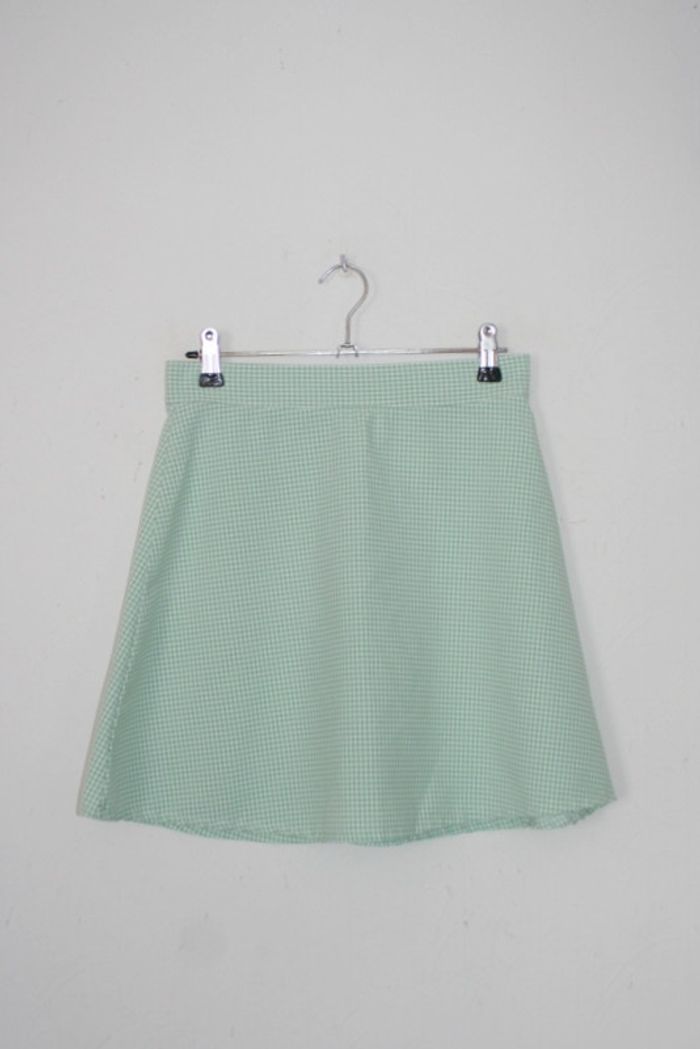 Jupe d'été vichy vert & blanc, sans étiquette de taille mais correspond à un 36/38, 33cm à la taille, 43cm de long, 110g