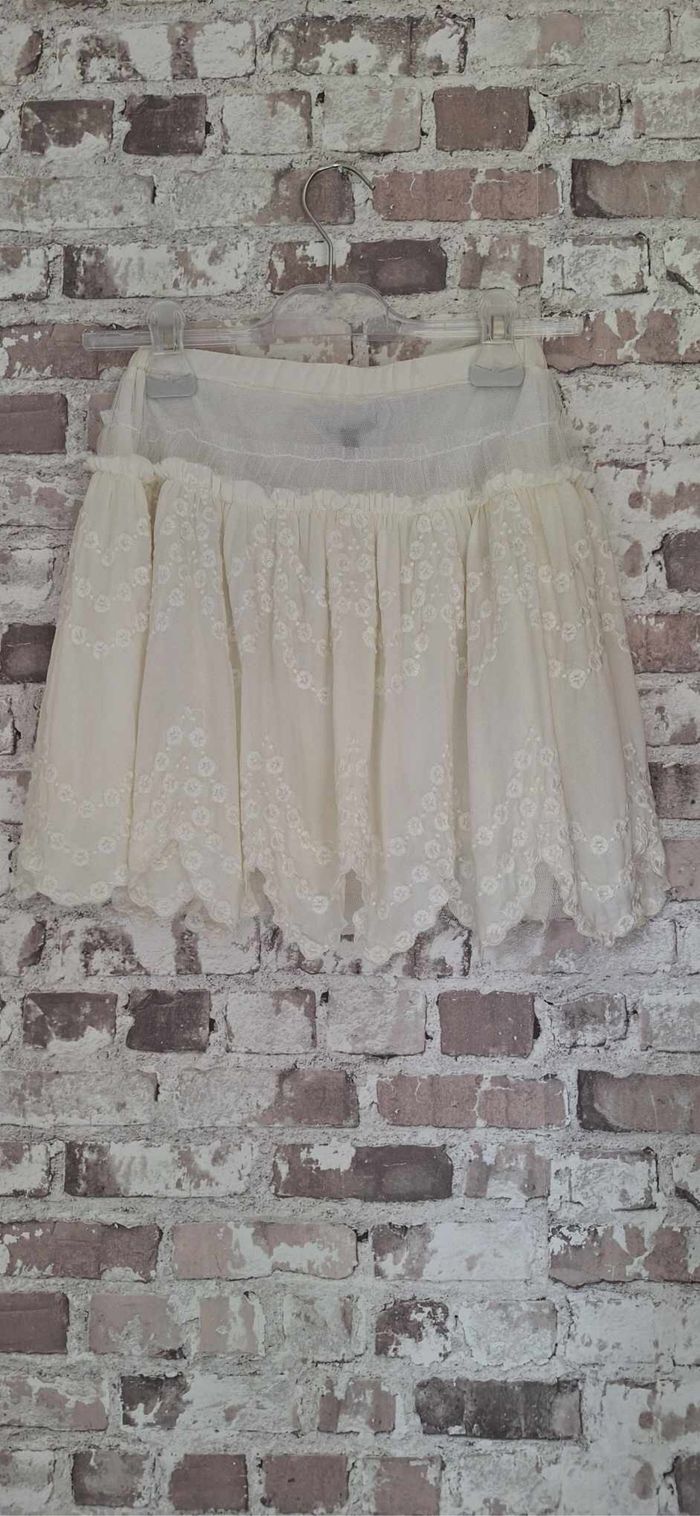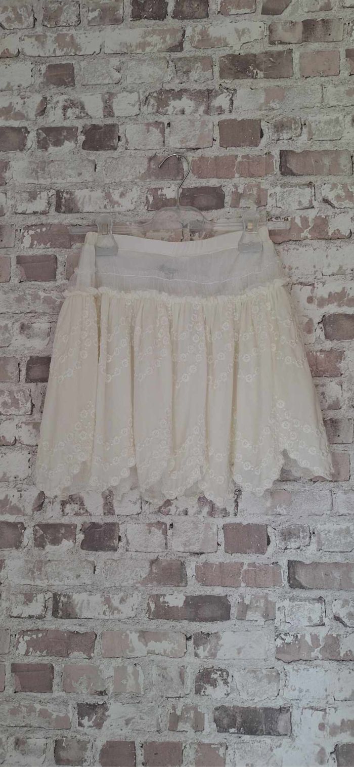 FEMME 34 / XS N°2458 jupe volant Blanc ,crème Doublé , dentelle Elastique taille Longueur 39 cm Taille 34 / xs Kiabi women 5€ Kelly_femmeT34