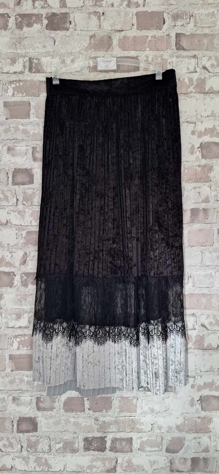 FEMME 36 / S N°2506 longue jupe Noir / gris Velours ,dentelle noir Elastique taille au dos 100% polyester Longueur 75 cm Taille 36 / s Zara basic Neuf plus d étiquette 🏷 12,50€ #kelly_femmeT36