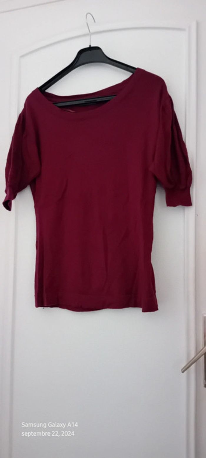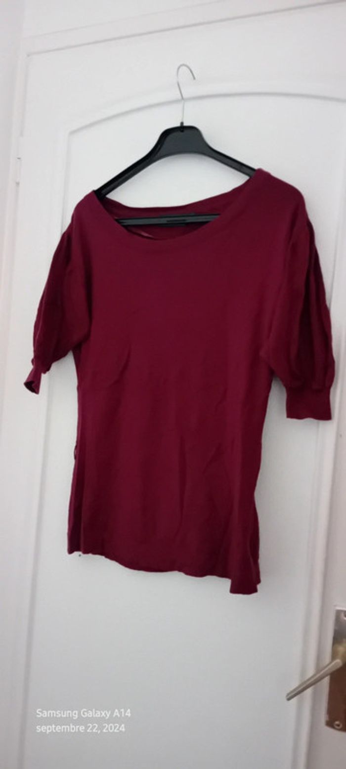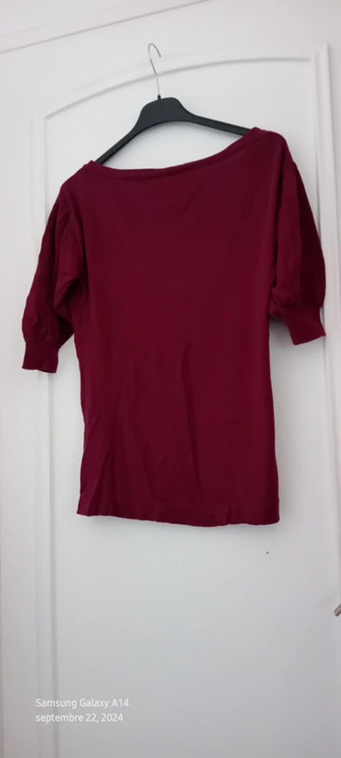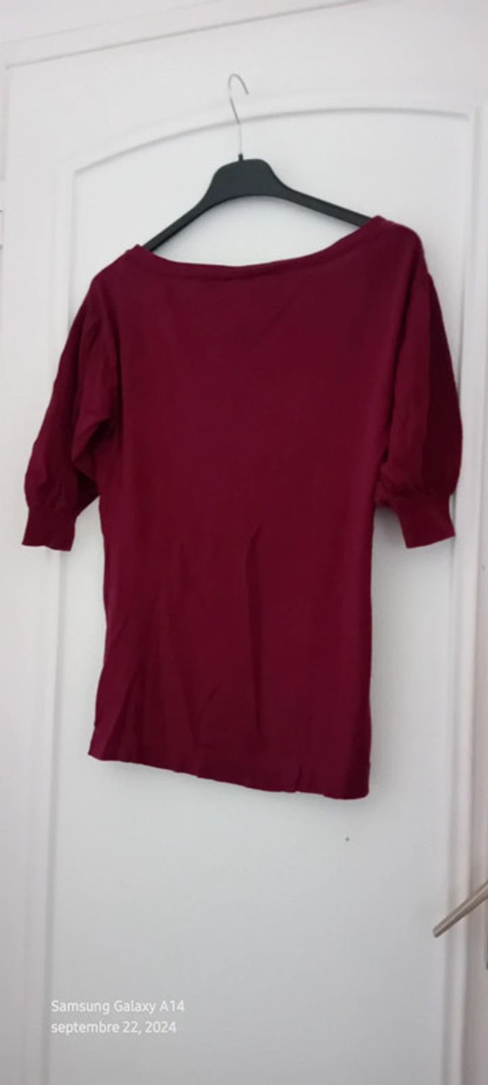 Pull fin mi long manches 3/4 bordeaux femme 34/36 kiabi - photo numéro 2