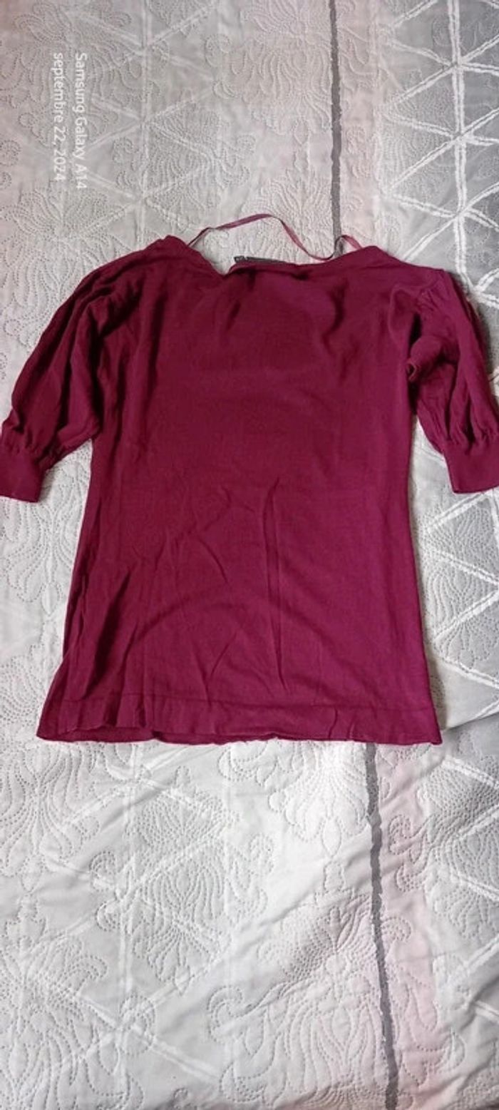 Pull fin mi long manches 3/4 bordeaux femme 34/36 kiabi - photo numéro 3