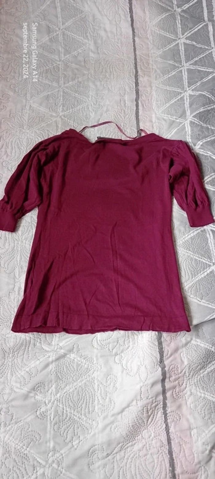 Pull manches 3/4 en coton col rond manches un peu bouffantes passants pour mettre une ceinture couleur bordeaux tirant sur le violet longueur 63 cm largeur aisselles à aisselles 45 cm largeur épaules 48 cm correspond à un 36 très peu porté en très bon état #midole #midolefemme36 ##midolefemme #pullfemme36 #pullmanches3/4 #femme36 #violet #kiabi