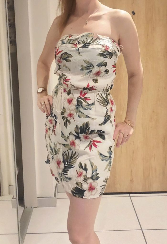 Légère robe d'été dans bretelles Pimkie. Composition de la robe : 100% Viscose. Composition de la doublure : 100% Coton. Couleur de base : blanc. Motif : floral. Marque : PIMKIE. Taille : S.