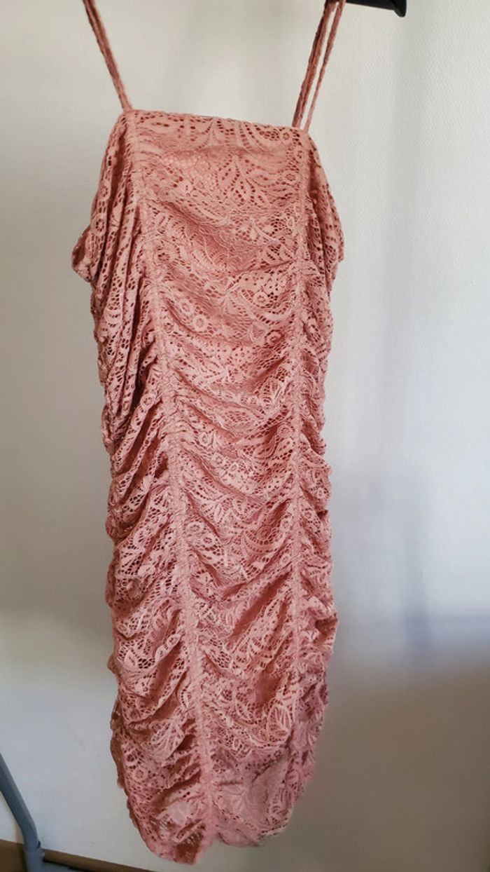 Robe de soirée chic courte - robe d'été. Robe pour occasions. Composition matière principale : 88% Polyamide, 12 % Elasthanne. Composition doublure : 100% Polyester. Couleur : rose pale. Taille : S.