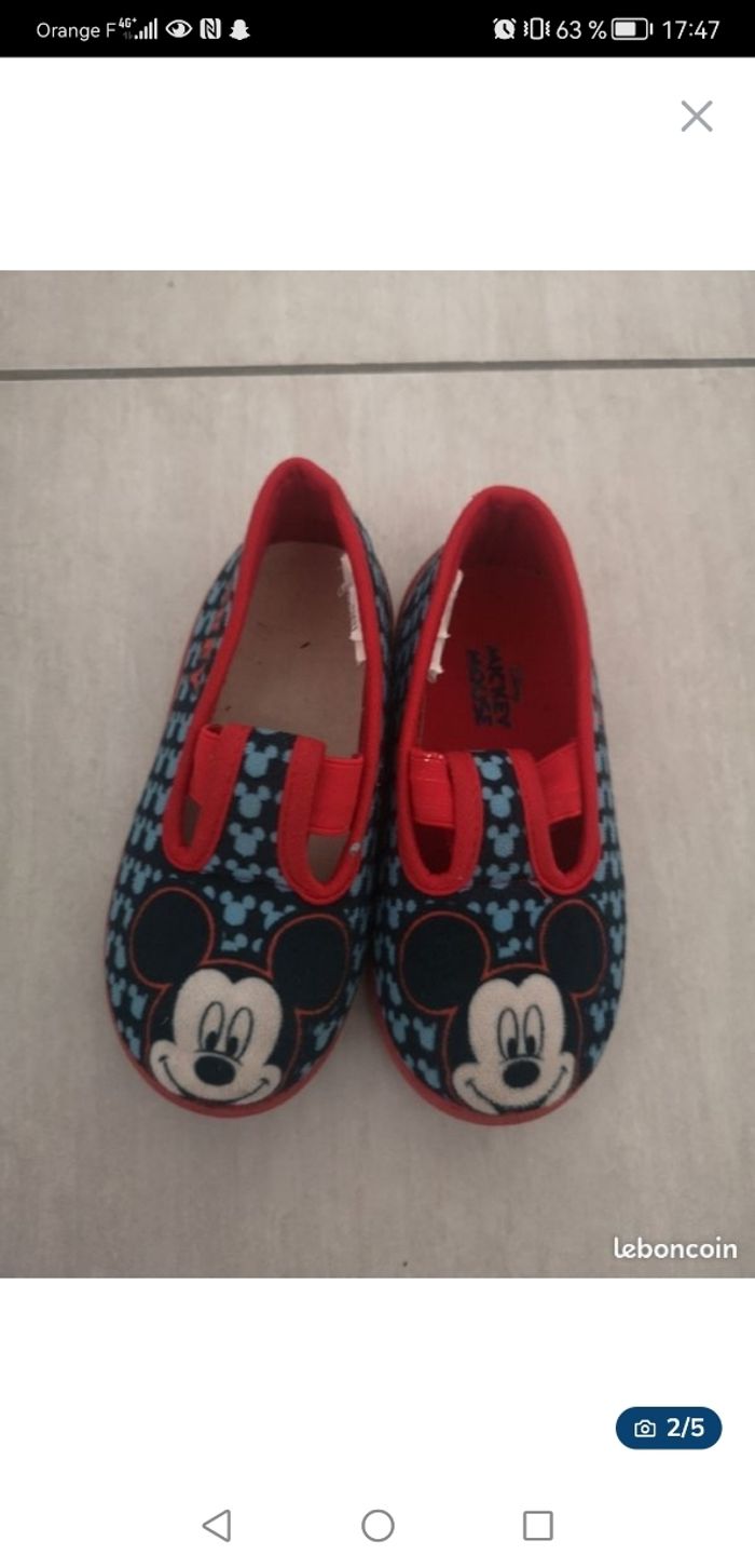 Chaussons garçon pointure 24 et 25 quasi neuve, botte de pluie Mickey pointure 25, basket Vans pointure 25