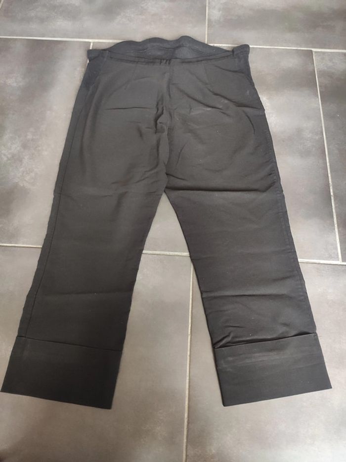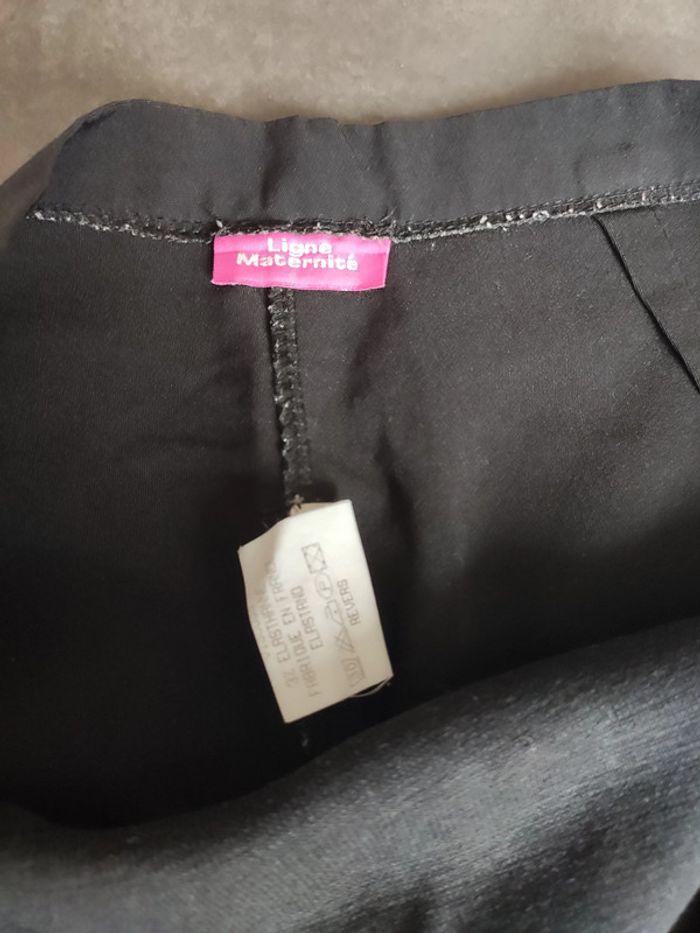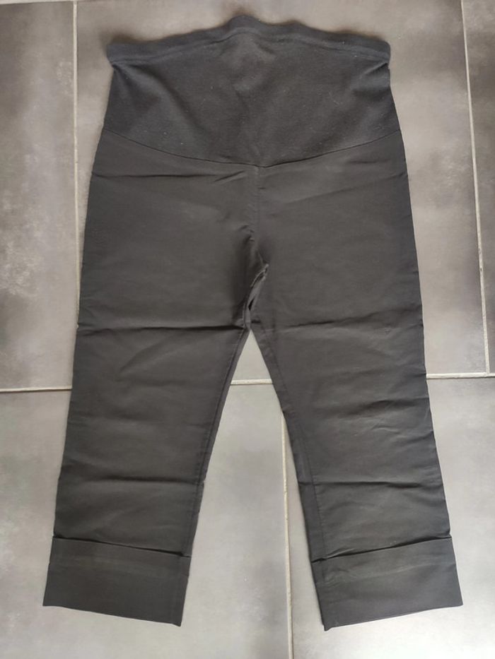 Pantacourt de grossesse de couleur noir avec bandeau pli en bas des jambes. Taille 42, en très bon état.