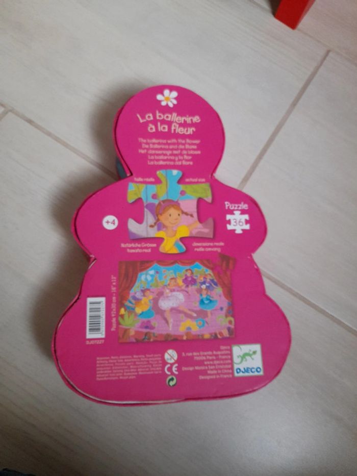 Puzzle djeco 4 ans et plus 36 pieces marque de colle sur la boite