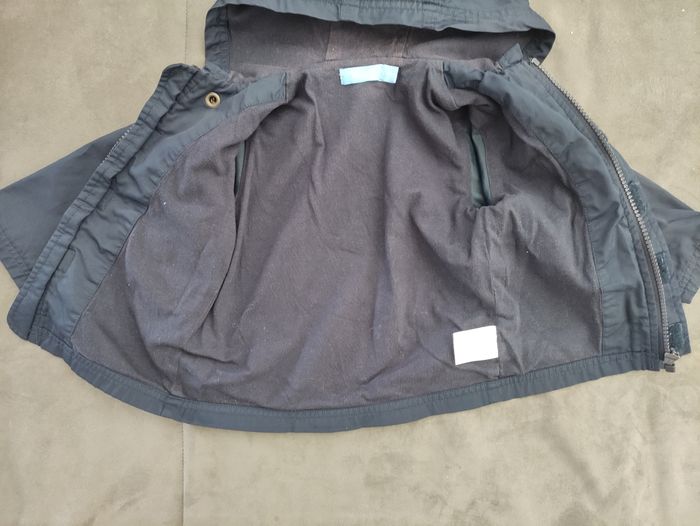 très bon état pas de tache ni de trou juste des bouloches dans les scratchs qui peuvent s'enlever #blouson #imperméable #garçon #bleumarine #18mois #garçon