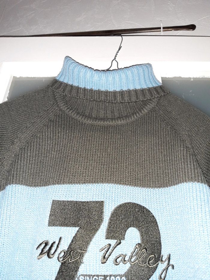 Pull col roule bien chaud Bleu et marron Taille 40 Aisselles à aisselles 50 cm Longueur 58 cm