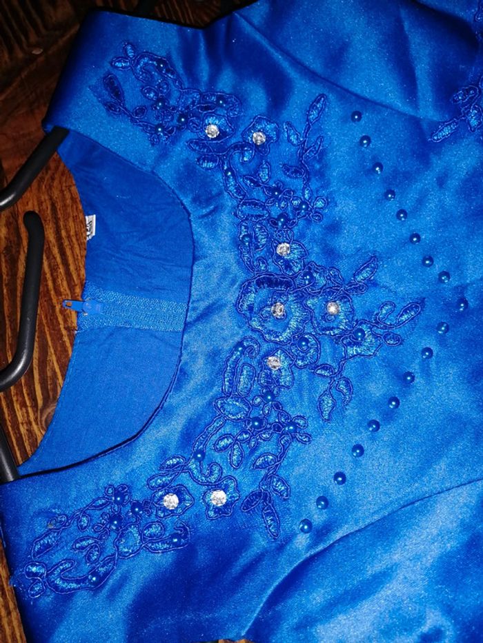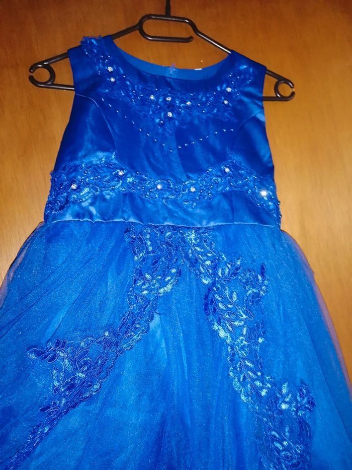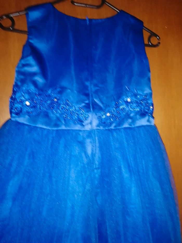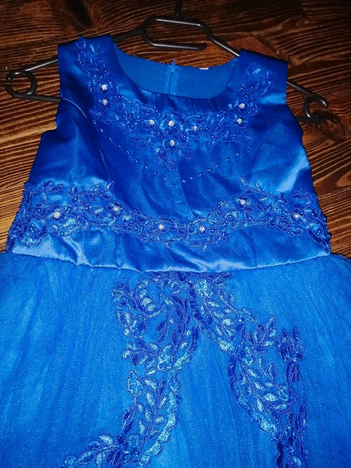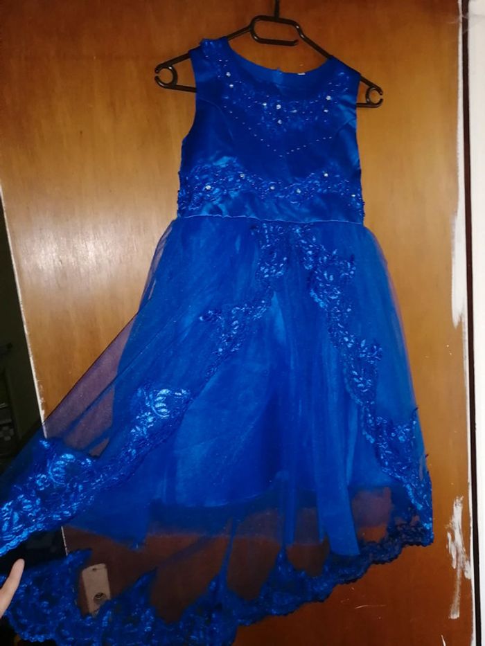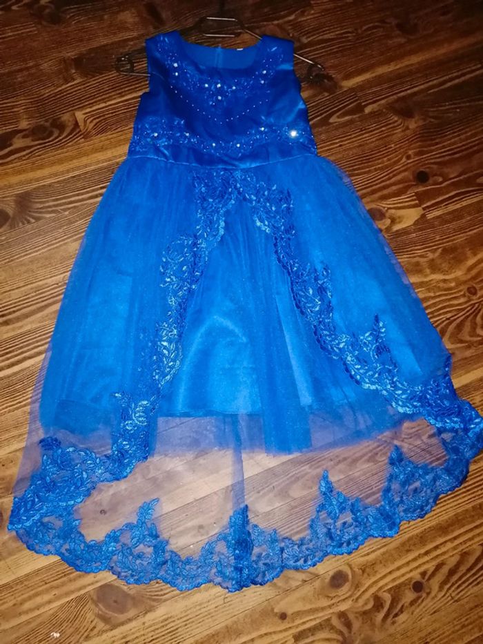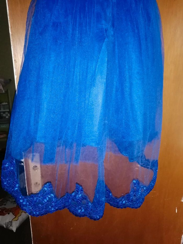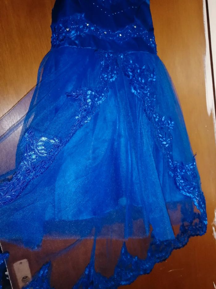 Magnifique robe doubler. Avec dentelle,perle. Couleur bleu roi Taille 12 ans Jamais porter car événement annuler Couleur bleu roi