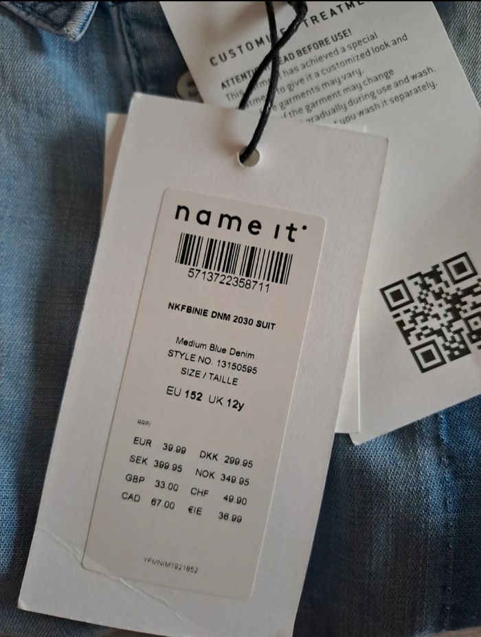 Superbe combishort en jeans fille taille 12 ans-152 Name it ! Neuve, avec étiquette 🏷