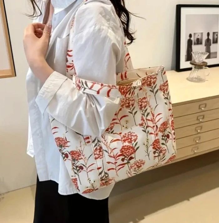 Joli sac motif fleur blanc et rouge
