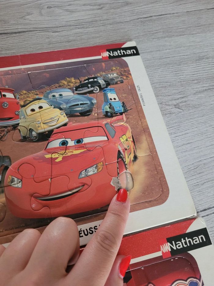 Puzzle cars 2 en parfait etat L'un est cassé à 2 endroit voir photo (ne gêne en rien le puzzle)