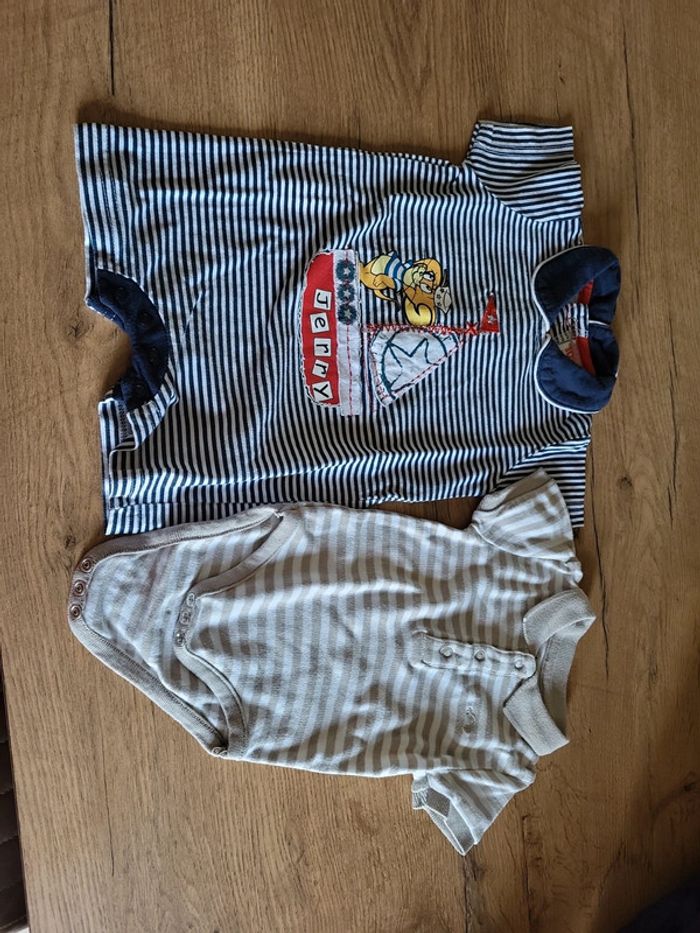 Lot été 3 mois 1 combi tom et jerry marinière short manches courtes 1 bodie manches courtes kitchoun col polo