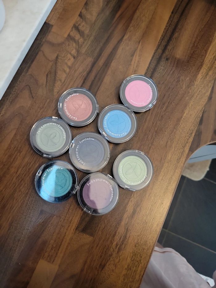 Fards à paupières mono Yves rocher 2 euros l'unité 10 euros le lot Ouverts et swatches mais pas utilisés