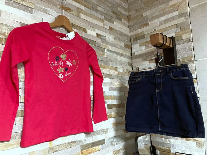 #ellymadytaille8ans tee shirt neuf jupe okaidi reglable