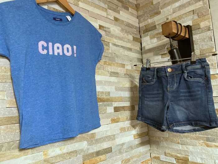 #ellymadytaille8ans short 7ans okaidi reglable 10ans tee shirt tao