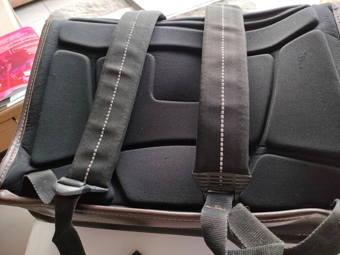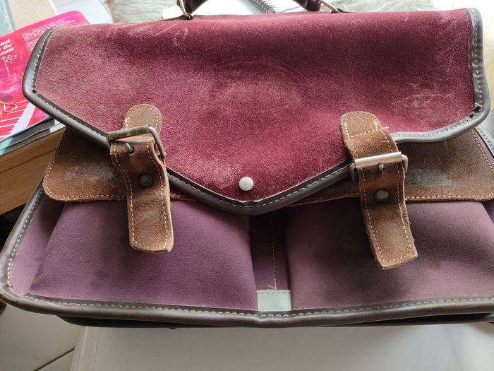 Cartable à bretelles au dos ,en bon état,pas neuf bien sûr mais tout à fait utilisable. Dimensions 30 x 40 cm