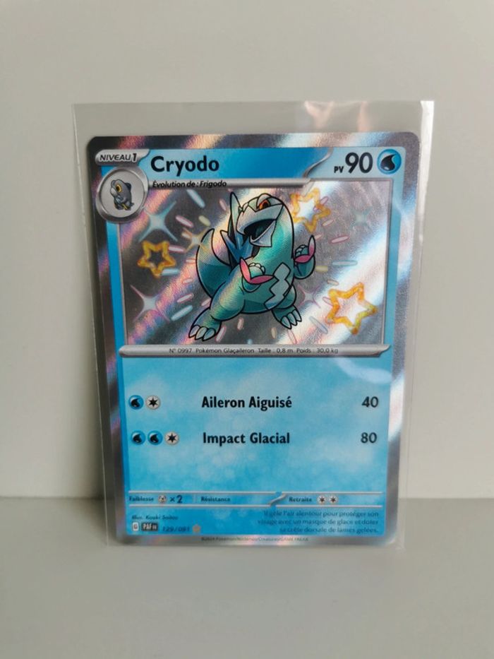 Carte Pokémon Cryodo 129/091, destinées de Paldea, neuve sortie du booster sous sleeve. #cartepokemoncathy7153