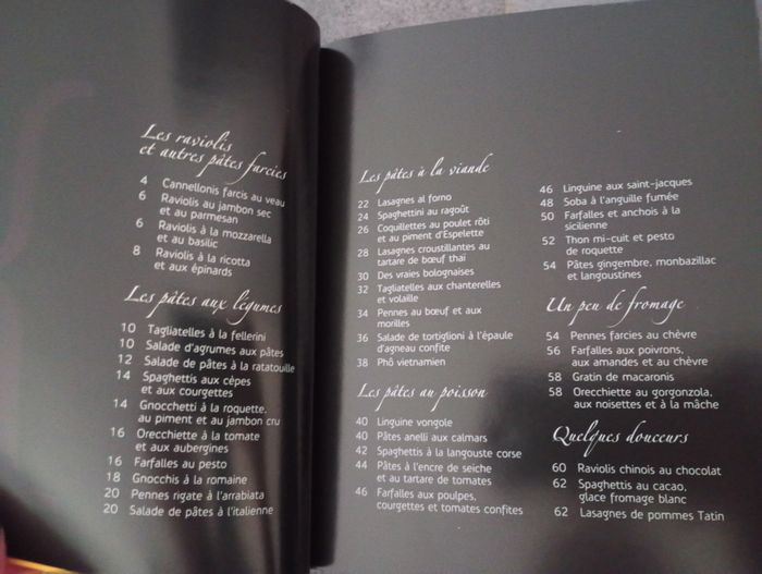 Livre de recettes  pâtes