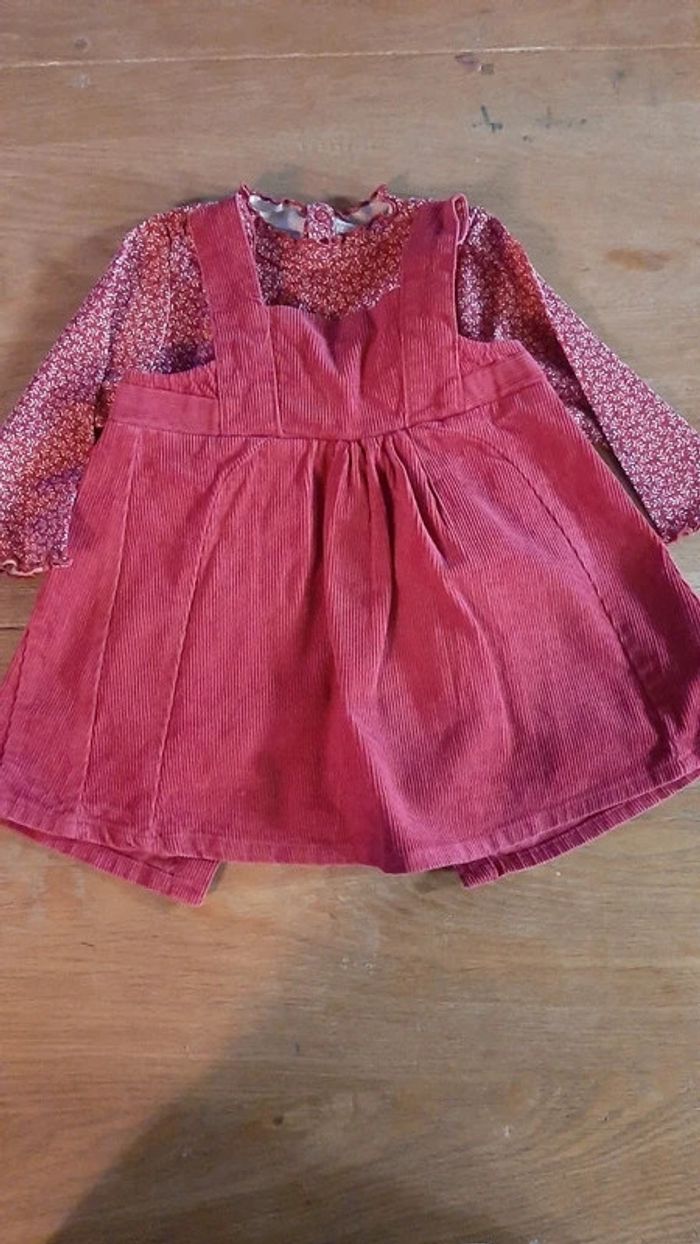 Ensemble robe velour et blouse fleur - photo numéro 1