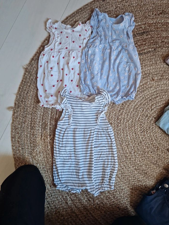 12 mois 3 robes 1 ensemble short maillot 2 combi short 5 barboteuse Dont la rouge fraise petite tache