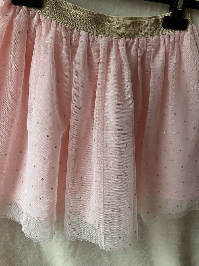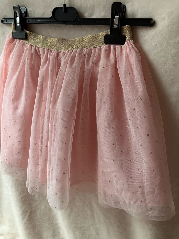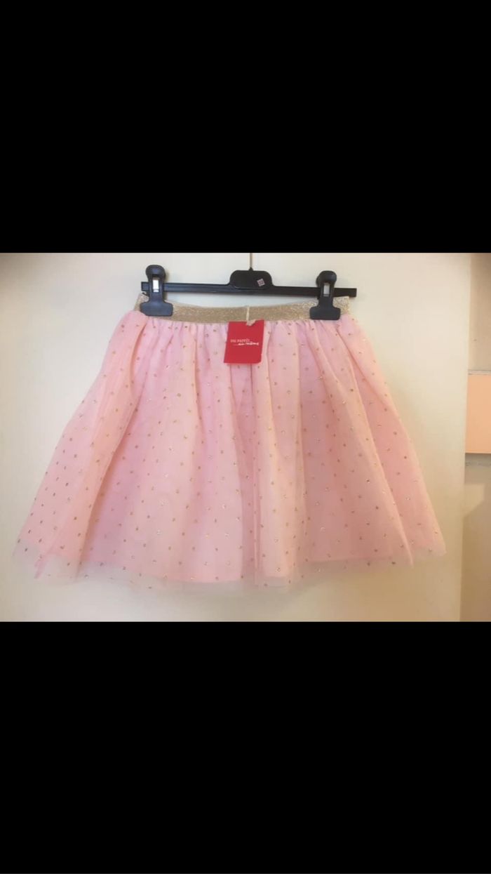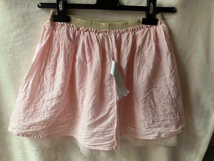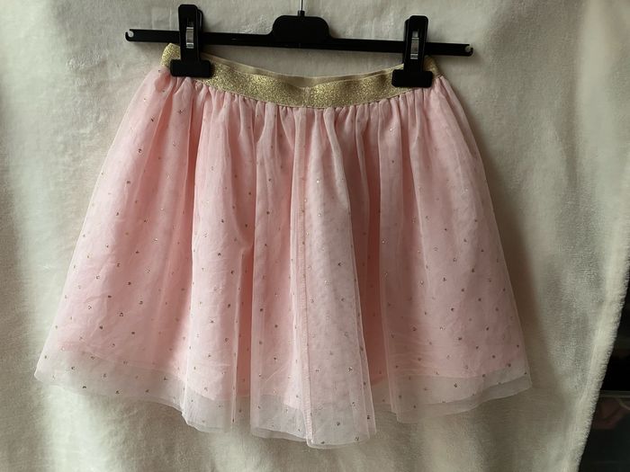 Jolie jupe Du Pareil Au Même 9/10 ans (140 cm) ~ Achetée neuve et peu portée donc en TBE !! Jupe avec 1 tulle rose clair avec motifs dorés puis 1 tulle rose uni + un tissu rose uni. Bande élastique dorée à la taille ~ Tissu extérieur 100% Polyester / Doublure 100% Coton ~ Vendue 4€ (prix ferme) / Envoi soigné.