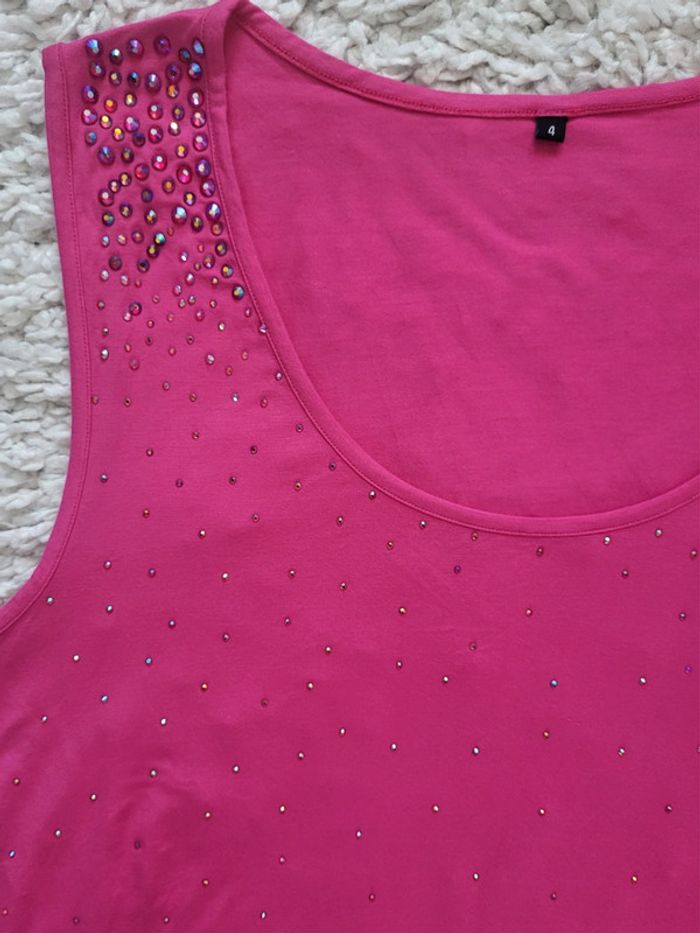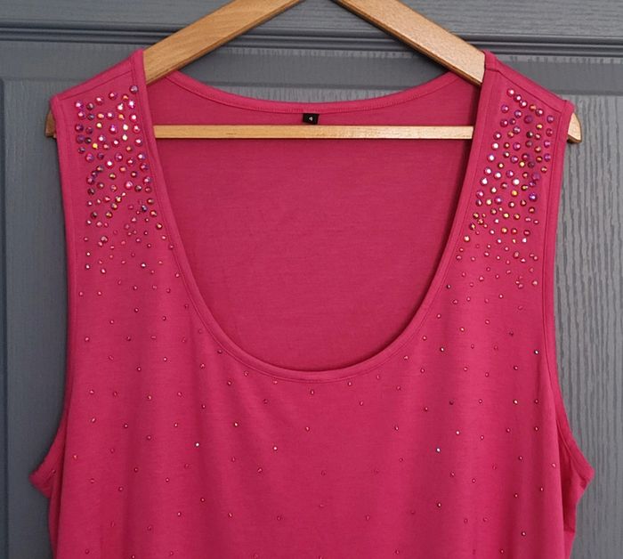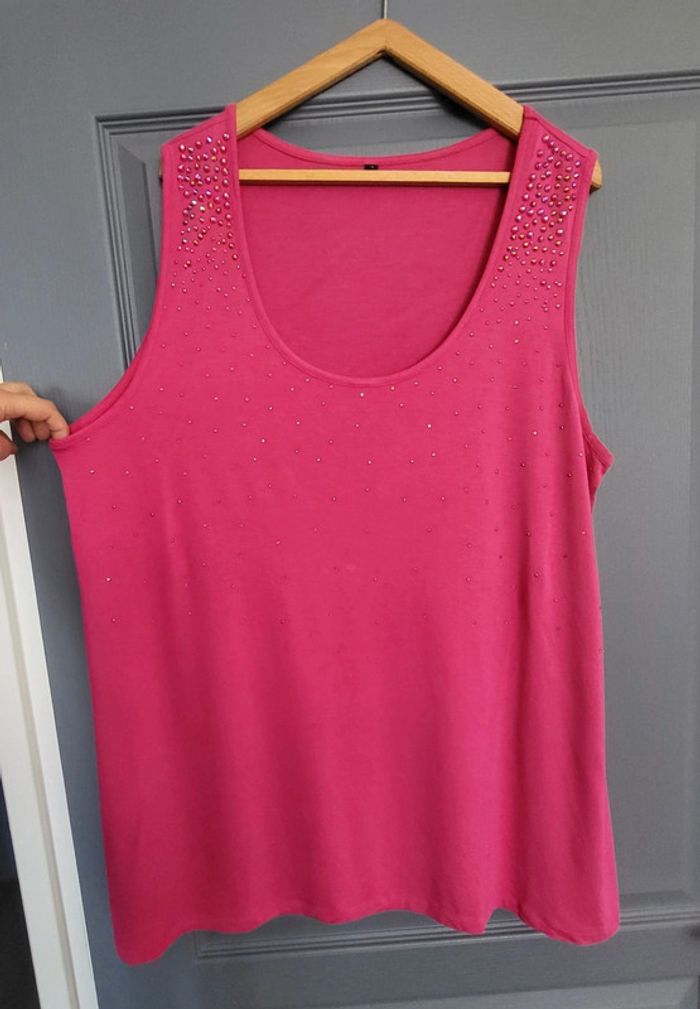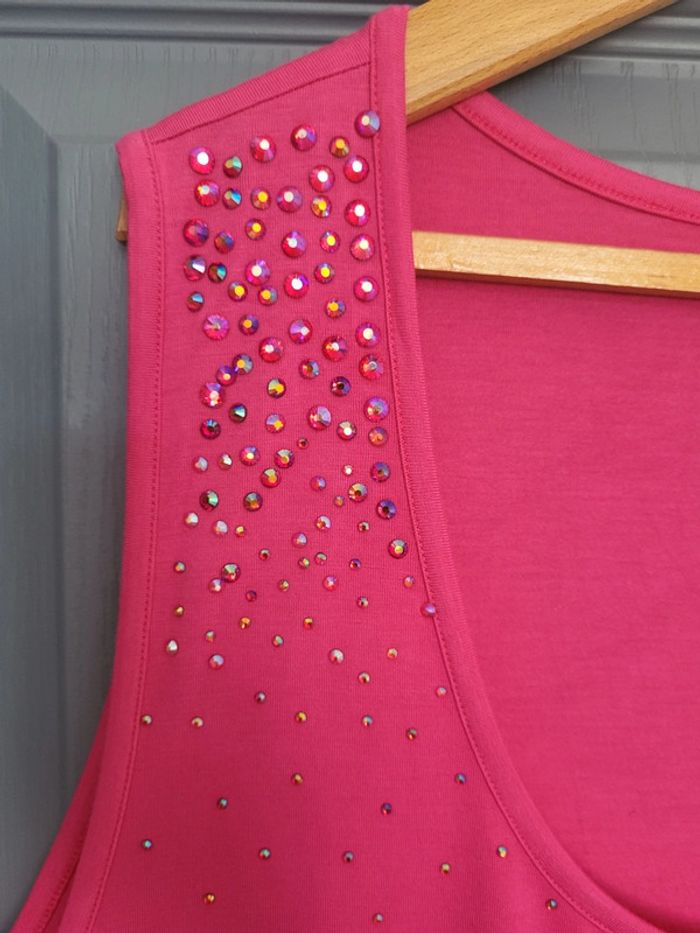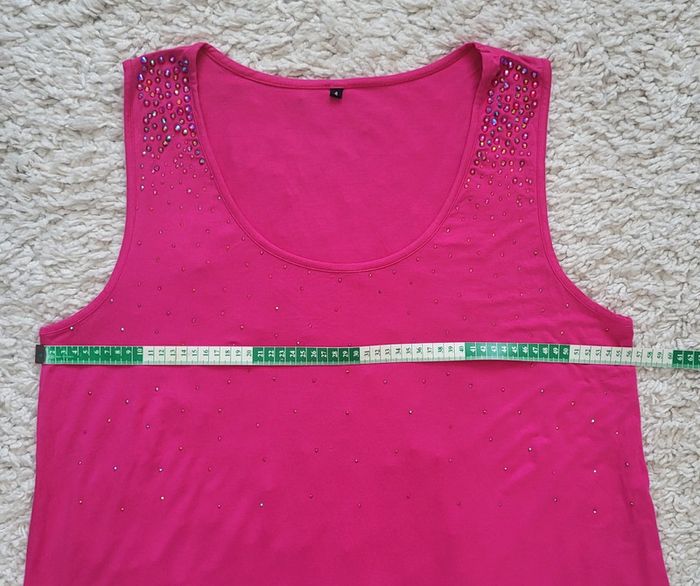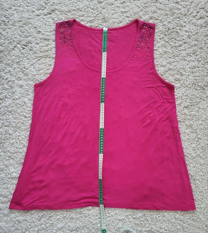 Très joli débardeur rose à strass La Redoute (étiquette manquante mais il a bien été acheté sur le site) Taille 46 Très fluide et léger à porter Tous les strass sont encore là Très peu porté, en excellent état La vraie couleur est visible sur les dernières photos ! #matka27_taille46 #taille46 #debarfeurfemme46 #top46femme #debardeurstrass46 #rosestrass #rose46