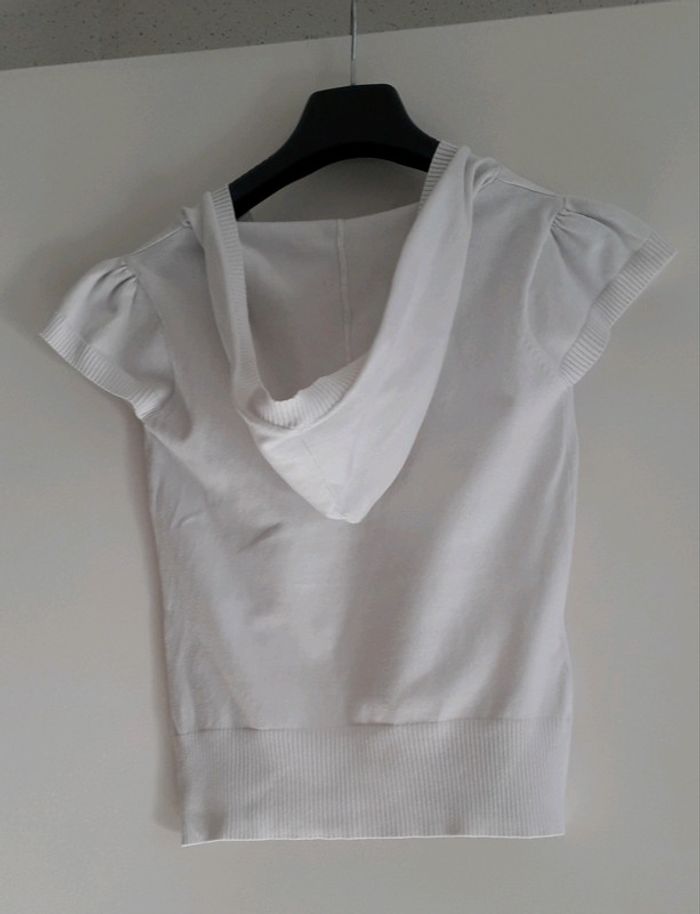 Pull tres fin manche courte...capuche Poche sur le devant.....taille 3