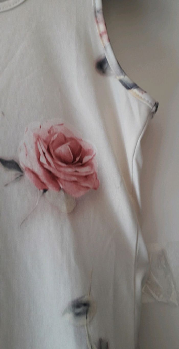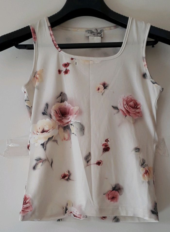 Debardeur fleuri. Ourlet un peu decousu