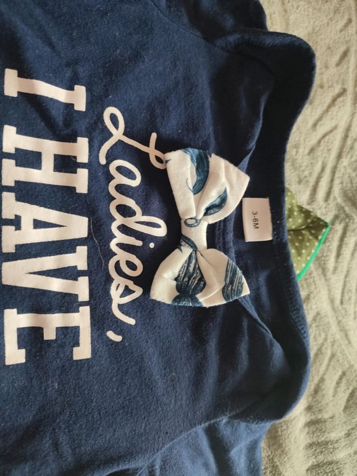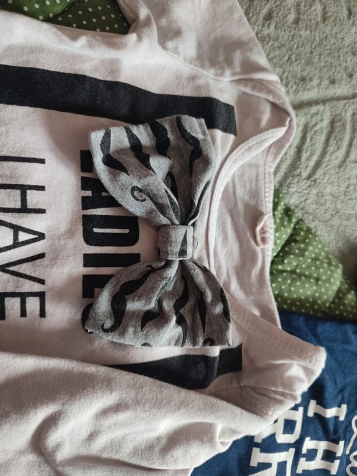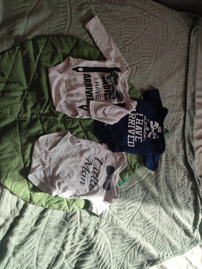 Jolis body qui font leur petit effet avec les petits noeuds papillons 2 manches courtes et un manche longue Sont en bon état , juste une ombre de tâche sur l'arrière sur les 2 plus clairs