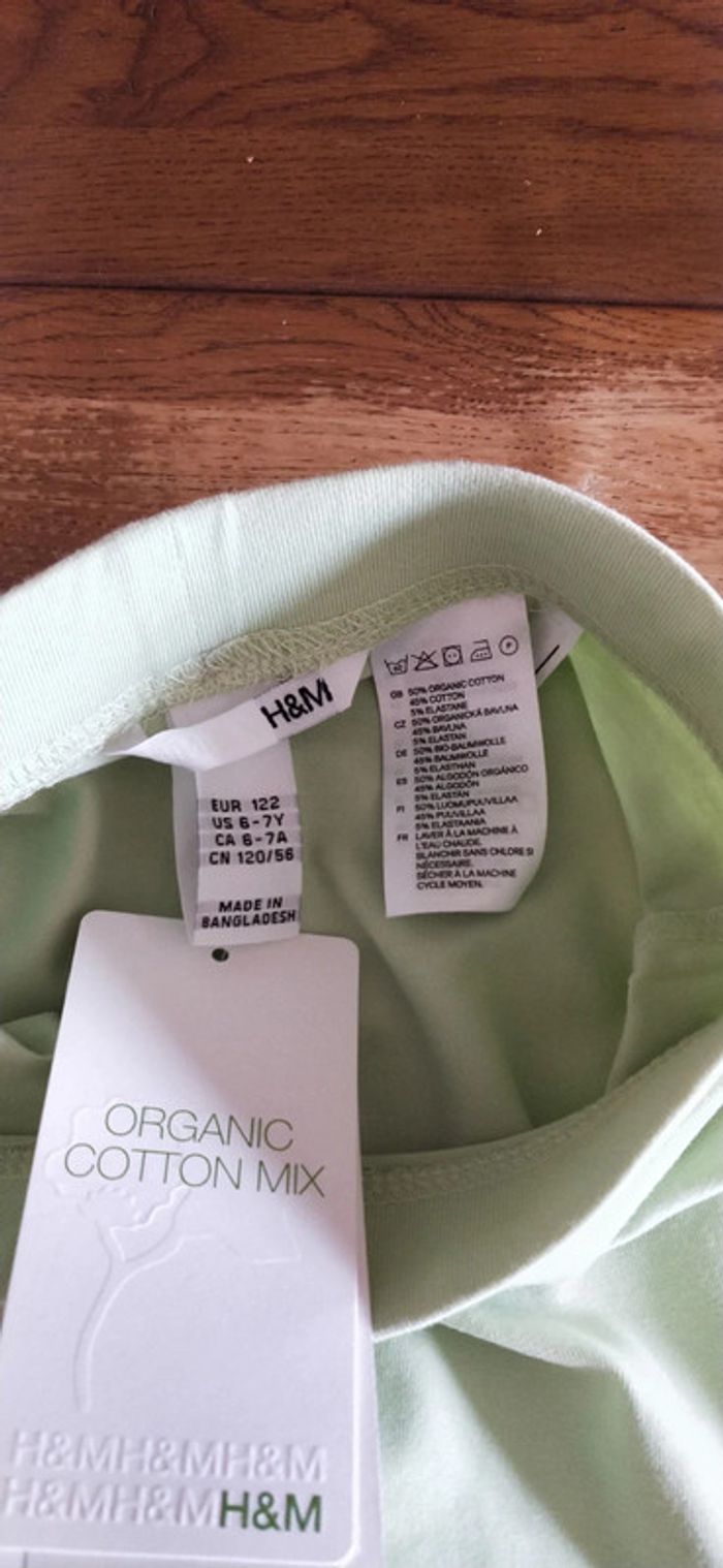 Corsaire de marque H&M en coton organique État neuf Couleur vert d'eau A noter qu'il y a un léger défaut d'origine à l'arrière du vêtement, visible sur dernière photo