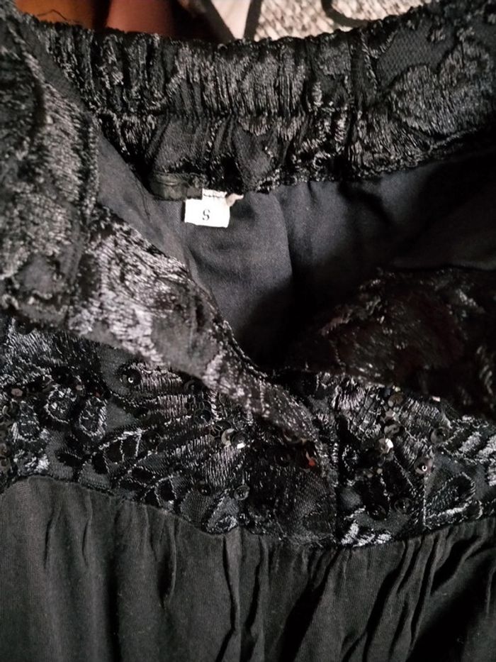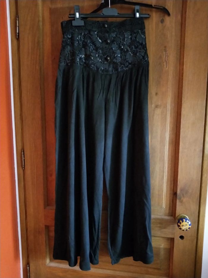 Pantacourt haut elastiqué dentelle, fermé par 3 boutons perlés Taille S Longueur 94 cm Peu porté, très bon état , hormis un petit accrocs recousu dans le bas, c'est pour cela qu'il nécessite plutôt un essorage léger