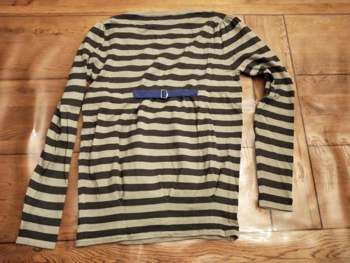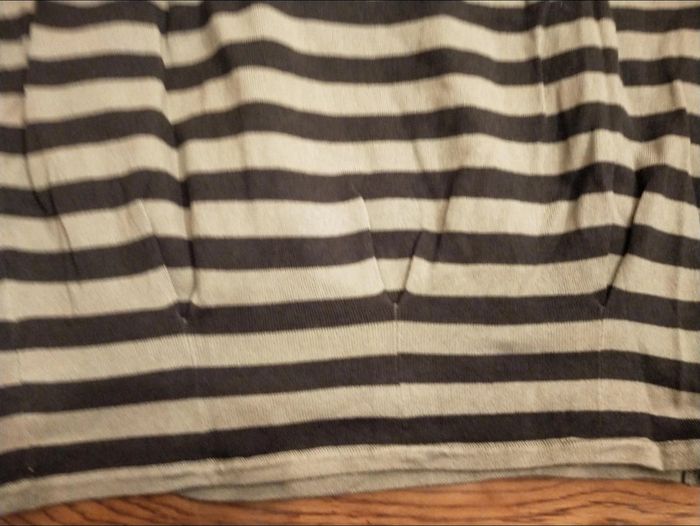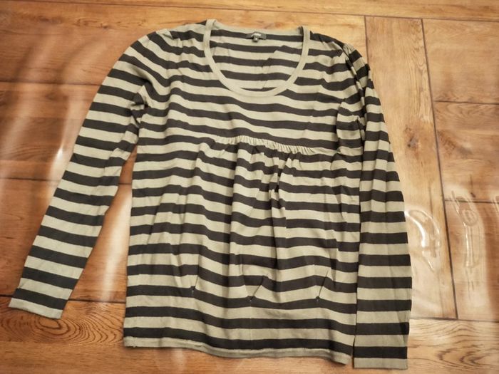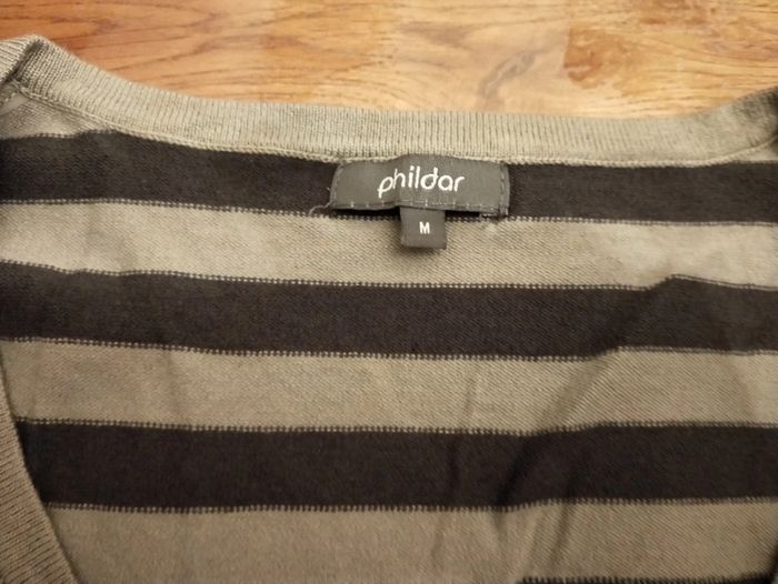 Pull fin Phildar Matière 100% coton Taille M État neuf sans étiquette Couleur vert kaki/gris et martingale bleue