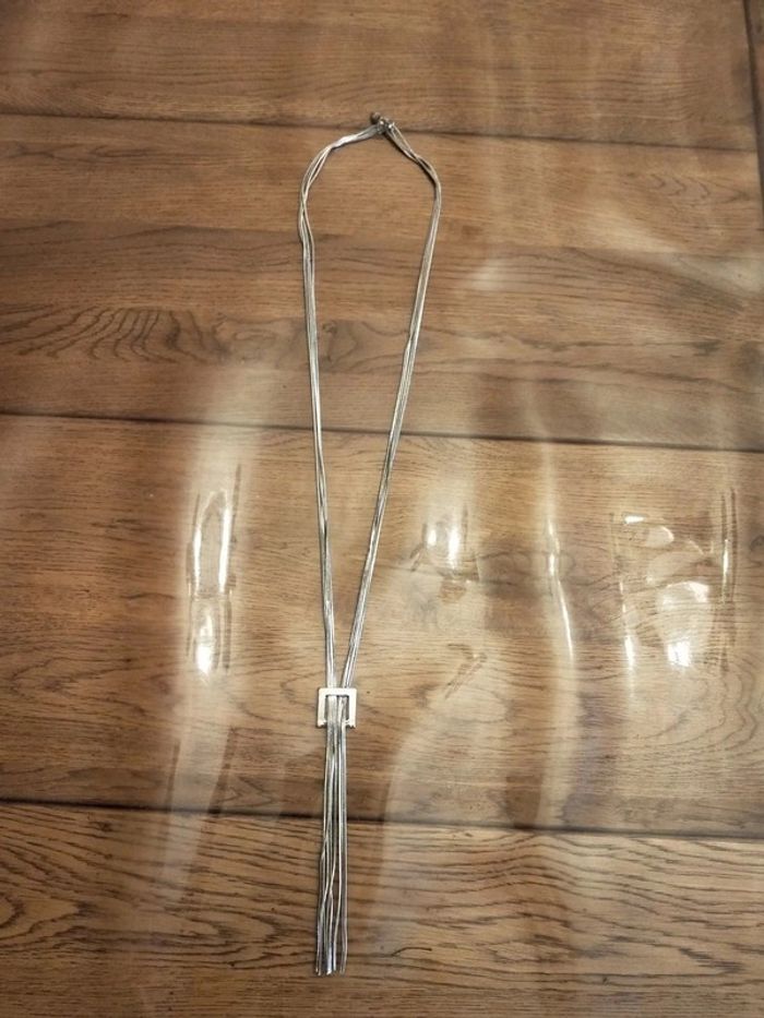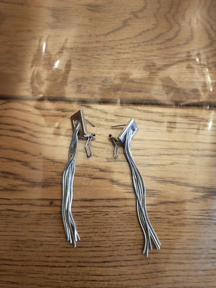Parure collier long, boucles d'oreilles Provenance Grain de malice Porté 1 fois Dimensions sur la photo Boucles d'oreilles avec tige plus clips Couleur argentée