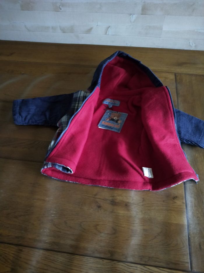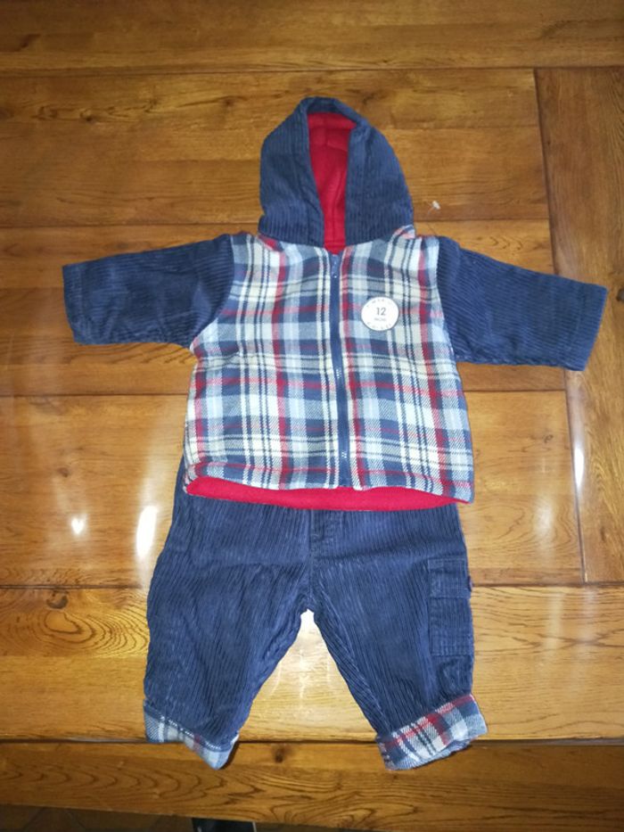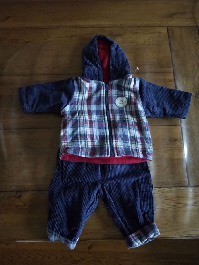 Ensemble garçon en velours La Halle Blouson avec fermeture et capuche/pantalon taille élastiqué Etat neuf Taille 12 mois