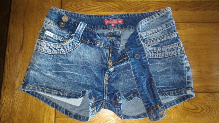 Lots de 3 shorts: 2 en jean Complices( 100% coton) et 1 bleu (coton et élasthanne) Kiabi Taille 36 Coupe : taille basse 2 ont été peu portés et 1 en jean a été lavé et jamais porté