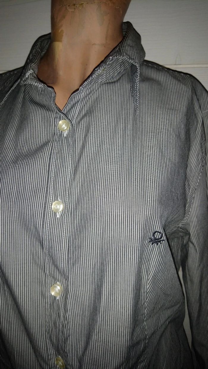 Jamais portée. Elle est en 100% coton. Fines rayures grises ideale pour porter avec un tailleur classique. N'hésitez pas à me poser vos questions et à fouiller dans mon dressing pour acheter en lot et profiter des réductions. #louloulipop36 #louloulipop38 #louloulipophauts