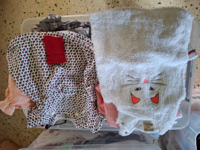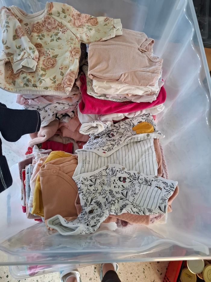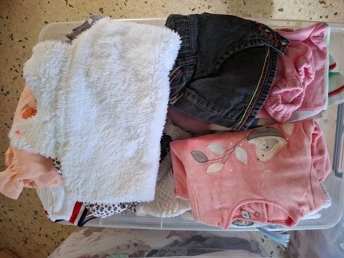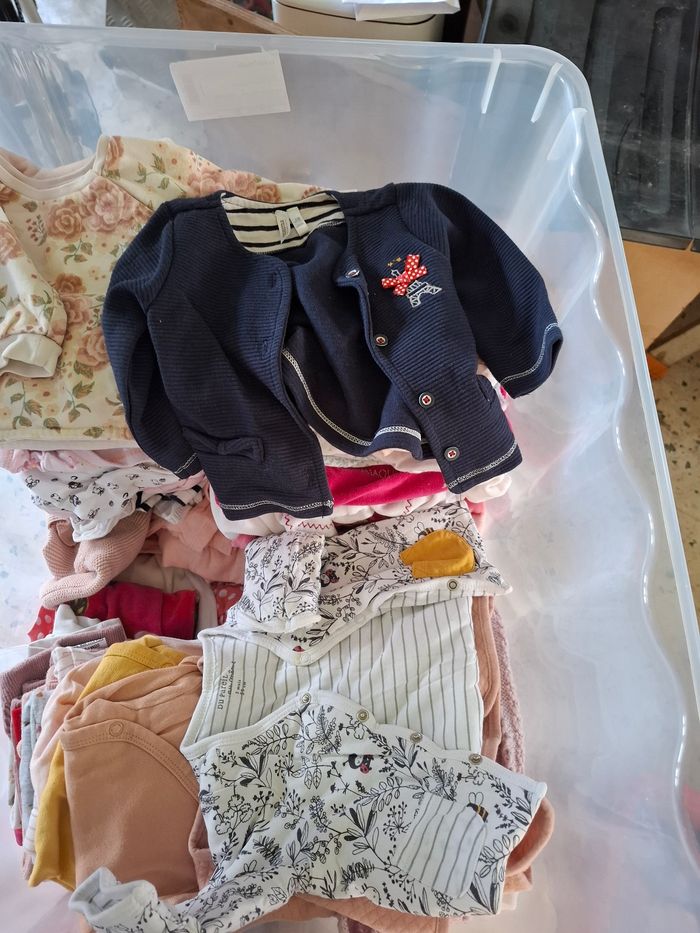 Lots de vêtements en caisse du 3 mois au 24 mois , bon état dans l ensemble , habits déjà portés ou neufs ! Toutes les caisses sont triés par âge.